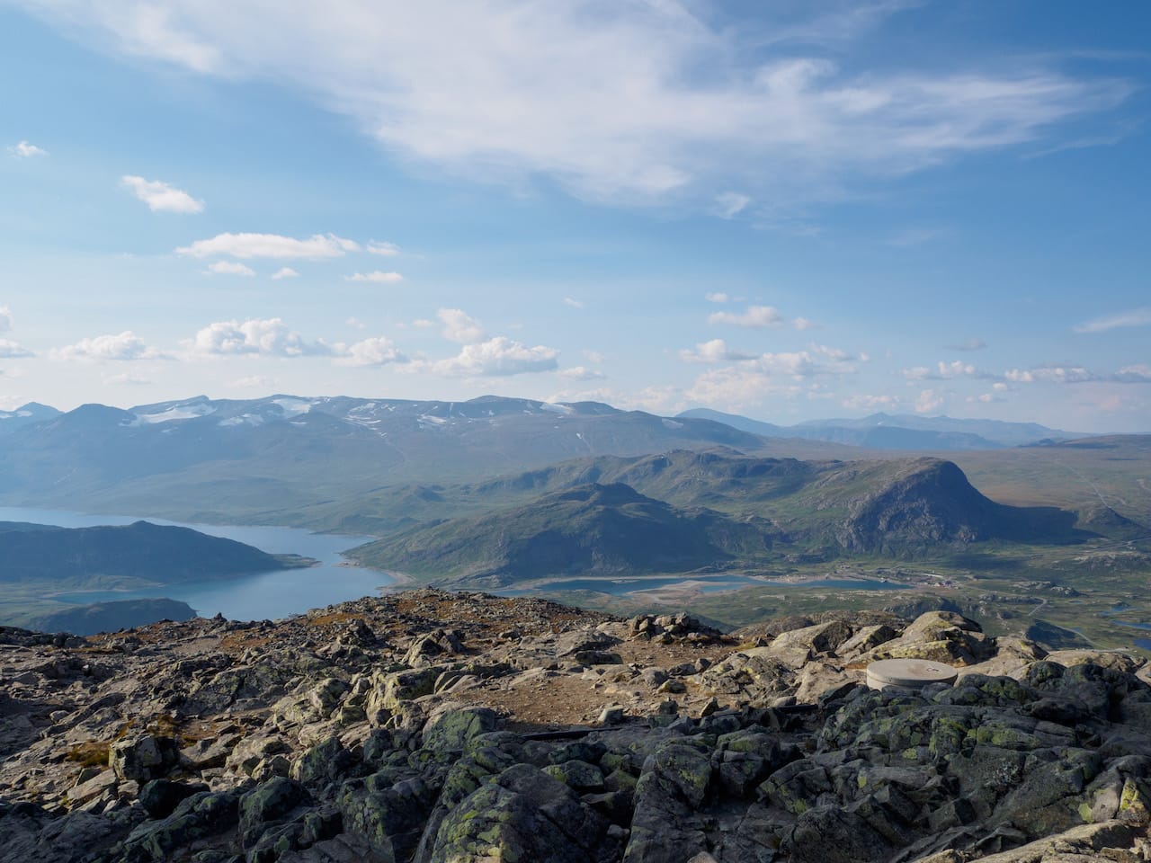 Eirik plukka meg opp litt etter lunsj på fredag 20. juli, og vi lessa opp en full bil og satte kursen langs østsida av Randsfjorden mot Valdresflye. Etter en stopp på Beitostølen for pizza og innkjøp av mat og kart parkerte vi på Båtskardet for en kjapp kveldstur til Bitihorn (1607 moh).