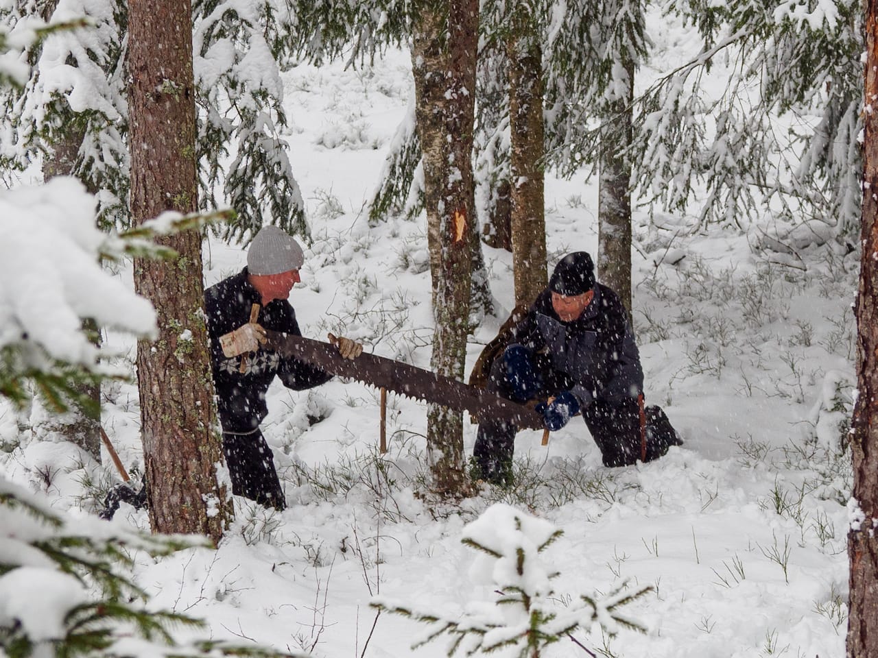 Felling av trær med øks og sag