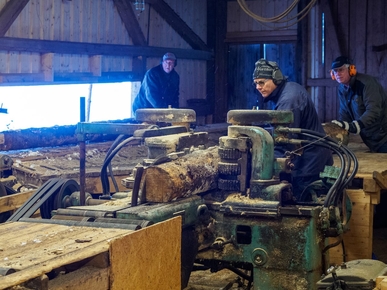 Historielaget har satt i stand det gamle saghuset på Harasletta, som sto ferdig i 2014. Det ble vist fram hvordan tømmeret kunne skjæres til plank.