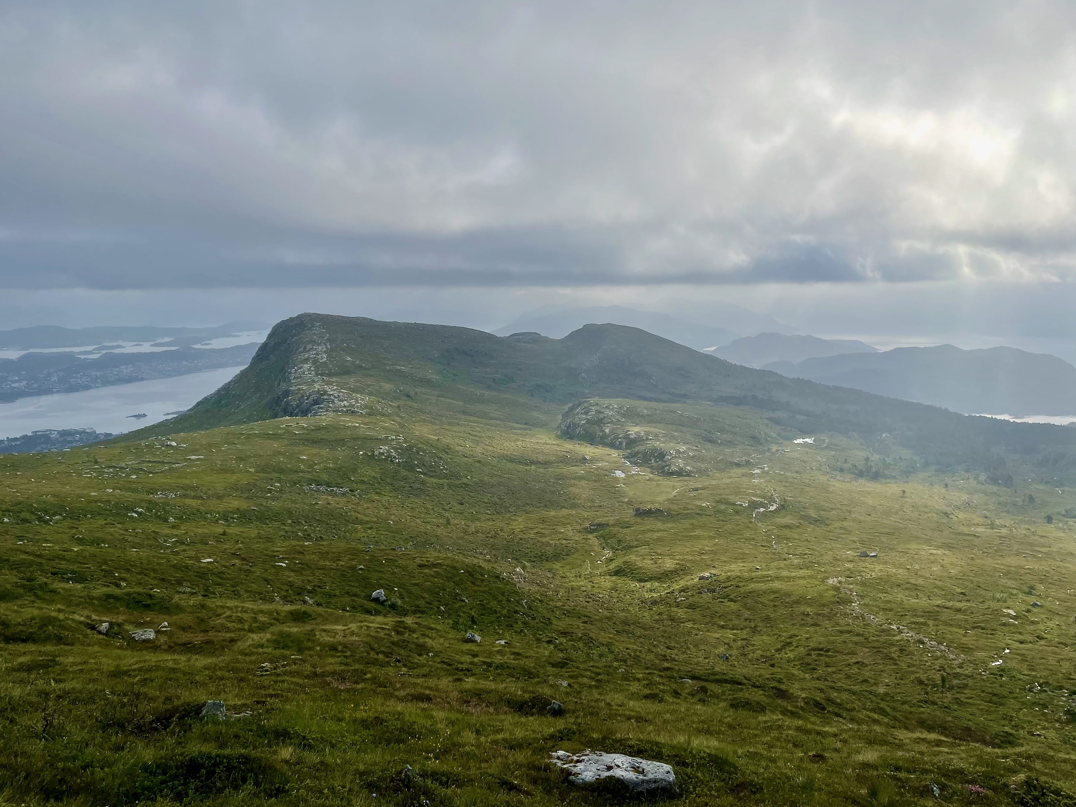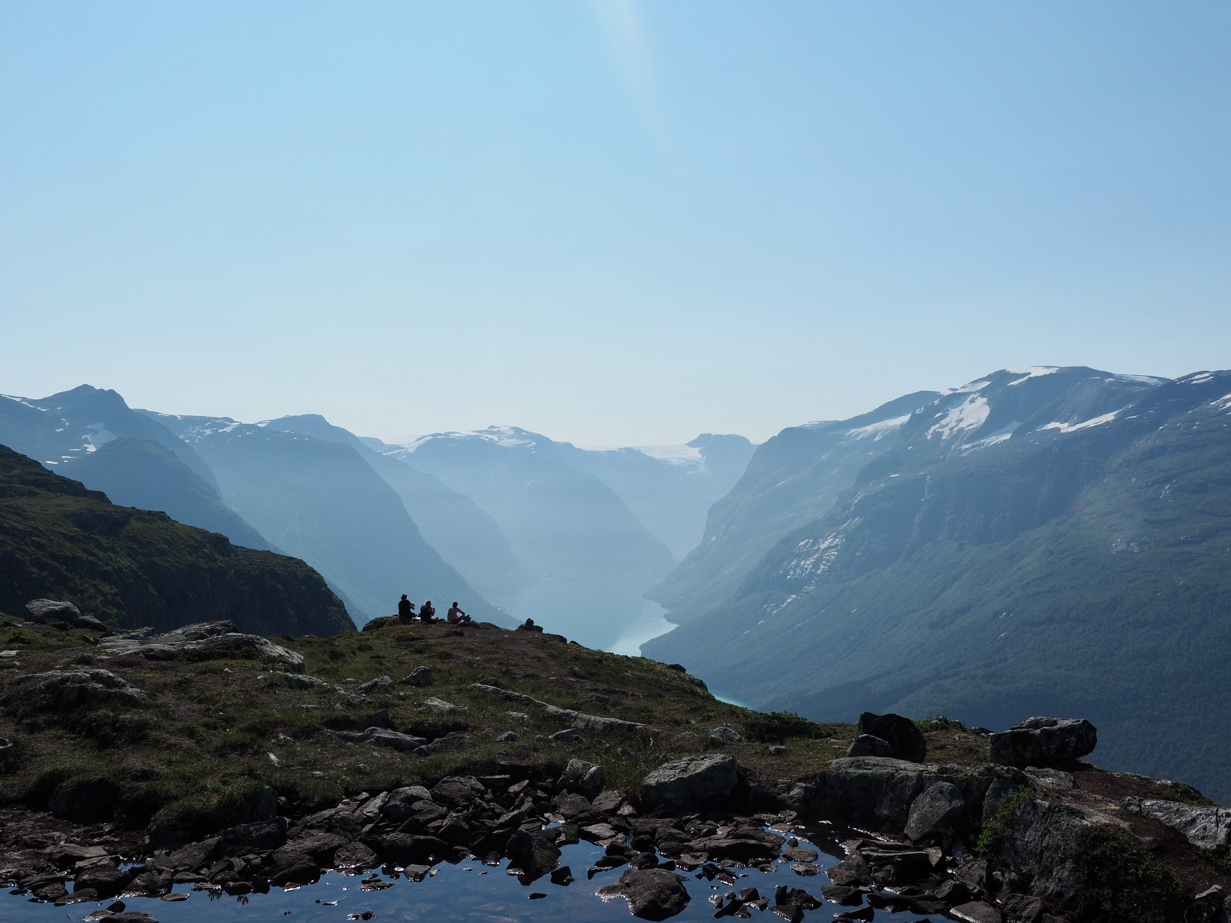 Søndagsmorraen var været igjen bra, men. Ikke like bra som på lørdagen - det lå et par skyer rundt Rasletinden, og hvis vi hadde skulle opp der i dag hadde vi mått vært mer oppmerksomme på været og mulighetene for at det skulle slå om. Det skulle vi derimot ikke